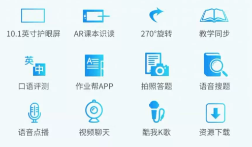 10.1寸大屏幕,一直贴膜使用,机器9成新,运行内存2G+32G,优点是保护小朋友视力,设置距离,小孩子一靠近就会黑屏并提示小朋友不要太近了,等远离才会显示,家长可以绑定手机q操控内容,可以当摄像头用监控房间一举一动,可以ar读故事课本,也可以读课外绘本,还有小学初中课本习题。